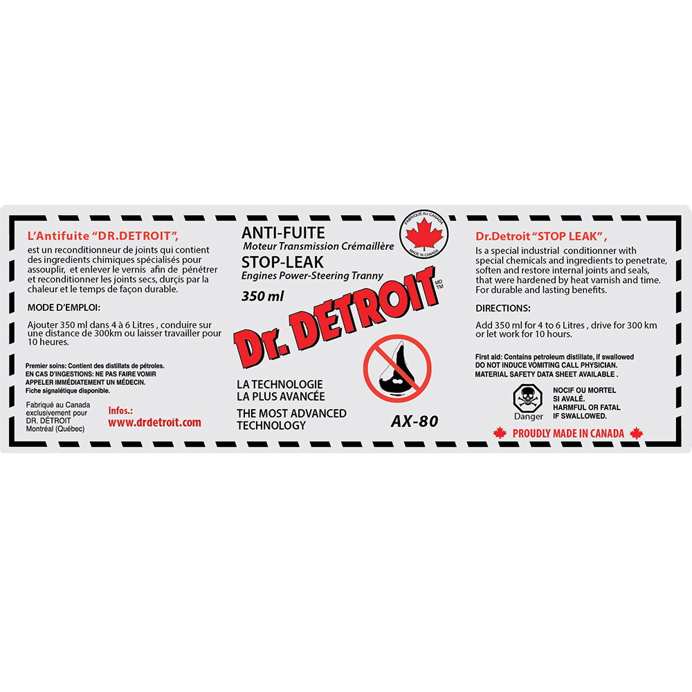 L’anti-fuite AX-80 se mélange à toute les huiles minérales et sinthétiques et n’affecte aucunement le rendement de ceux-ci.